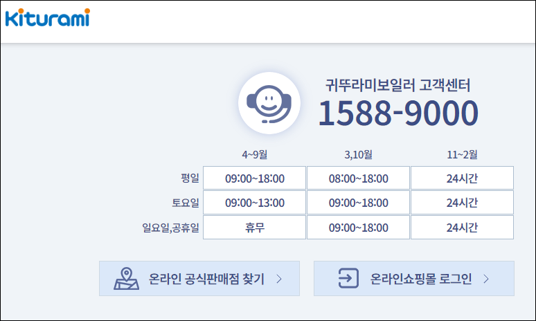 A/S신청 번호는 1588-9000번으로 신청하시면 되는데요, 귀뚜라미 보일러 회사는 특이하게 계절별로 엔지니어 업무시간이 차이가 있습니다.
