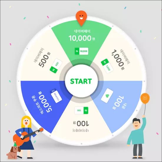 네이버 지식인 룰렛 이벤트는 룰렛판이 돌다가 멈추면 바늘에 해당하는 당첨금을 주는 이벤트였습니다.